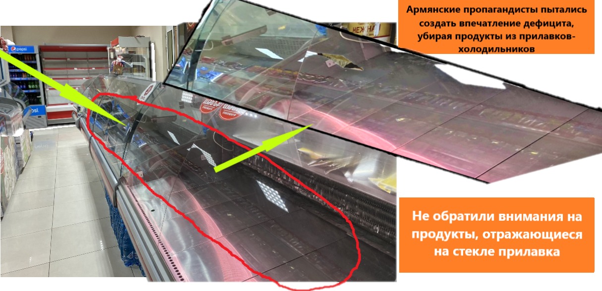 Факт 1. Обратим внимание на продуктовый ассортимент и количество покупателей магазина "СБС маркет", расположенного на улице Экимяна 11 в Ханкенди. Если в городе массовый голод, нет еды, то почему в этом магазине нет очередей, а прилавки ломятся от продуктов? Может продавец "турок", и поэтому армяне бойкотировали это место?