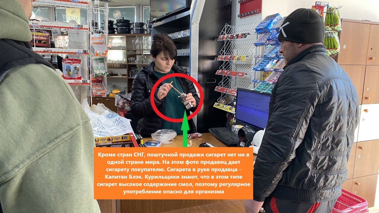 Факт 9. Кроме стран СНГ, ни в одной стране мира нет отдельной продажи сигарет. На этом фото продавец дает сигарету покупателю. Сигарета в руке продавца - капитан Блэк. Курильщики знают, что в сигаретах этого типа высокое содержание смол, поэтому регулярное употребление опасно для организма и марка этой сигареты дорогая. В целом курение опасно для здоровья, но этот вид имеет более серьезные последствия. Вот почему есть люди, которые предпочитают покупать его по частям. Армяне используют этот момент для пропаганды того, что "сигаретные изделия больше не встречаются в магазинах".