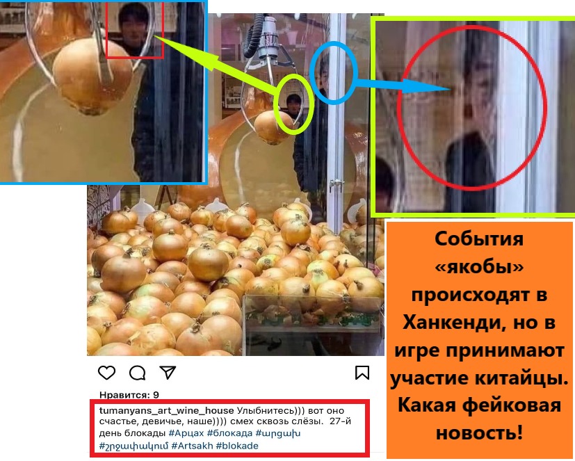 Факт 7. Это фото — хороший сценарий для «камерных шуток». Те, кто жил в советское время, хорошо помнят это устройство. В автомат можно было кинуть деньги и захватить подарок через железные крюки. Здесь вместо подарка кладут обычную луковицу. Из комментария видно, что это устройство было установлено в Ханкенди и жителям дали такой шанс, потому что лука было мало.