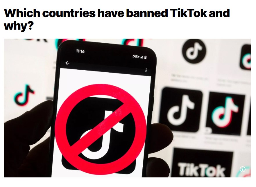 США, Канада и Новая Зеландия входят в число стран, которые по аналогичным причинам запретили использование TikTok на телефонах государственных чиновников. Фактически было выдвинуто предложение полностью запретить TikTok в США, но оно было отклонено 30 марта 2023 года.