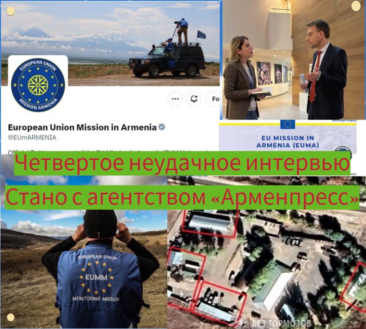 Пресс-секретарь Верховного представителя Евросоюза по вопросам внешней политики и безопасности, Питер Стано, дал интервью армянскому государственному агентству «Арменпресс». В интервью представитель ЕС утверждал, что «наблюдательная миссия» (EUMA – прим. ред.) была запущена по запросу властей Армении, она является гражданской и безоружной, а ее цель — установление мира в регионе. Он охарактеризовал миссию «беспристрастной» и отметил, что «миссия продемонстрировала свою значимость в содействии созданию благоприятных условий для нормализации армяно-азербайджанских отношений».