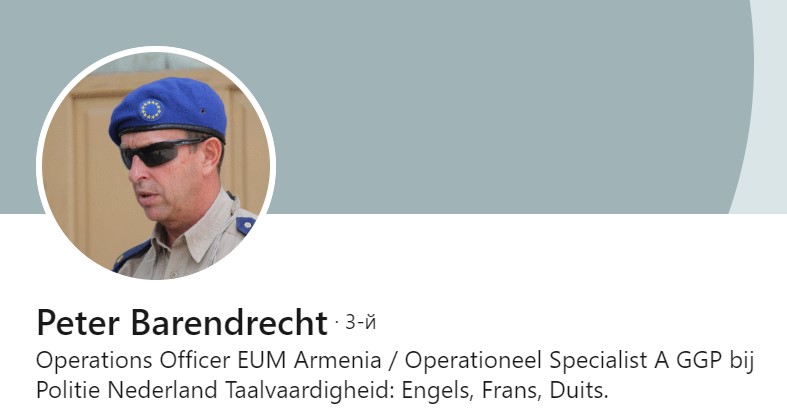 Представим также Хакоба Газаряна, сотрудника миссии, который является представителем армянского народа. Этот человек работает переводчиком в EUMA, а его последняя должность была главным исследователем в Совете безопасности Армении. Повторяем: в Совете безопасности Армении.