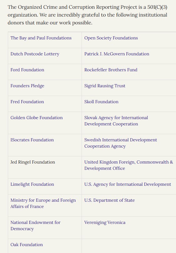 Ссылаясь на отчеты организации за 2020-2023 годы, можно отметить, что основные доноры OCCRP это: