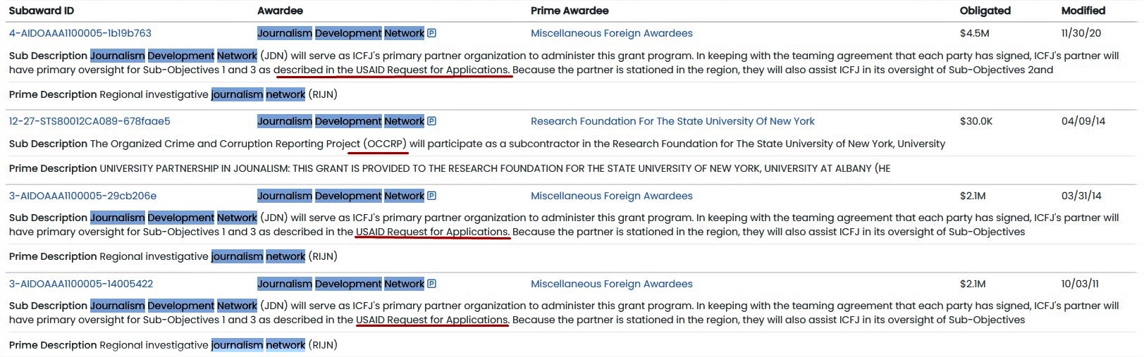 В 2016 году «независимые расследователи» получили грант от правительства США на сумму 1,695,000 долларов под названием «борьба с коррупцией». Источник: отчет OCCRP за 2016 год, стр. 48