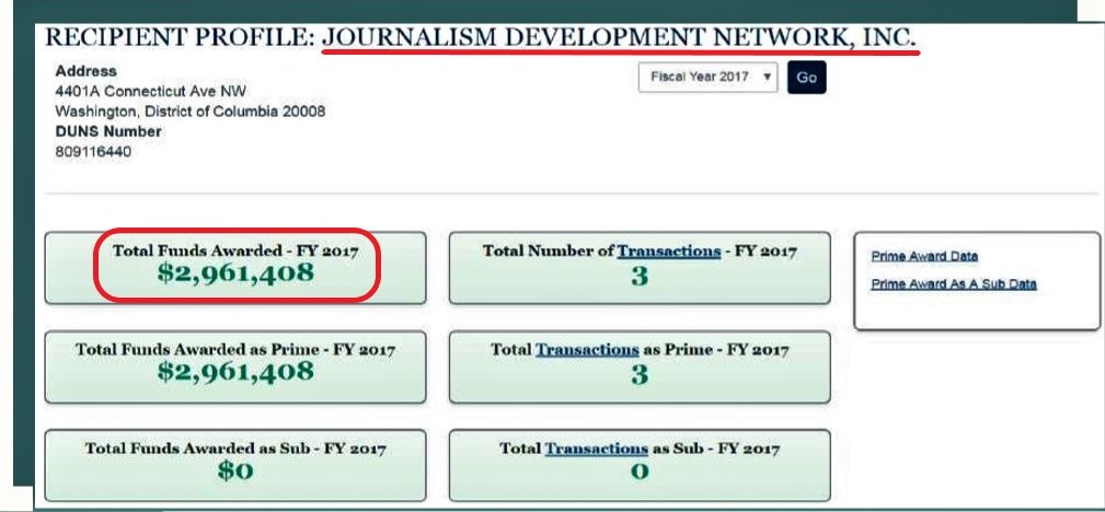 Аналитики подсчитали, что в течение 2011-2017 годов «настоящие независимые и свободные журналисты-расследователи» получили от спонсоров 10 миллионов 812 тысяч долларов финансирования. Половина этих средств, а именно 5 миллионов 238 тысяч долларов, поступила от Федерального правительства США или Государственного департамента. Уникальный показатель «независимой и свободной деятельности»!