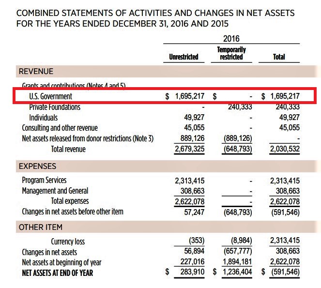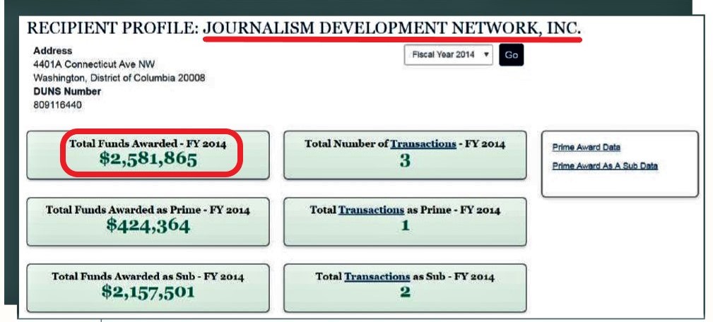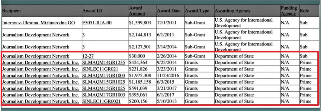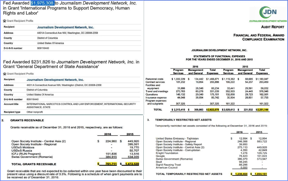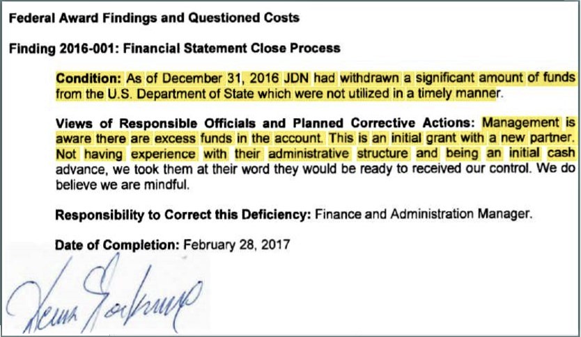 Финансирование JDN государственными учреждениями США было даже отражено в отчете о проведении аудиторской проверки финансовой деятельности организации. В отчете аудита, проведенного в 2016 году, указаны выделенные бюджетные средства и полученные гранты и награды за два года (2015 и 2016 годы). (Audit report financial and federal award compliance examinatıon for the year ended. December 31, 2016)