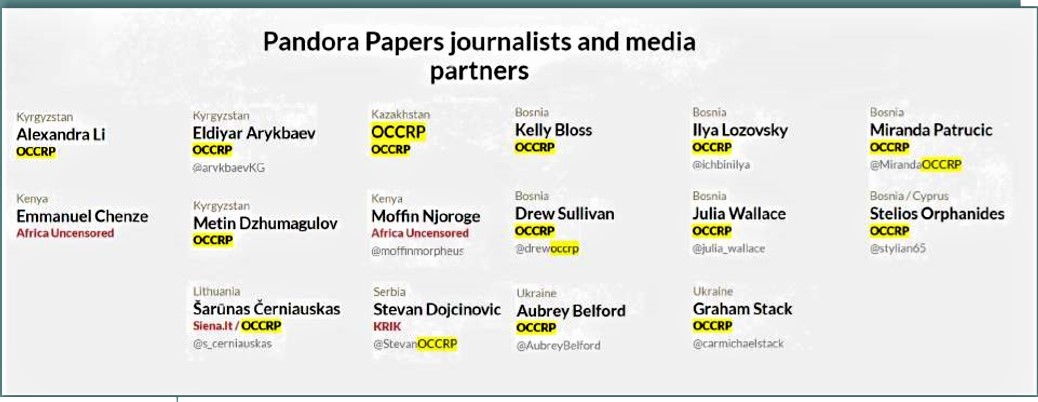Обратим внимание на эти факты: из опубликованной ими же информации видно, что большинство людей, работающих над документами «Панамы» и «Пандоры», являются сотрудниками и членами OCCRP.  Хотя говорится, что в процессе превращения утекших документов в расследовательские материалы принимали участие «ICIJ» и другие члены сети, большинство расследований, как видно, проводили хакеры-разработчики из OCCRP.