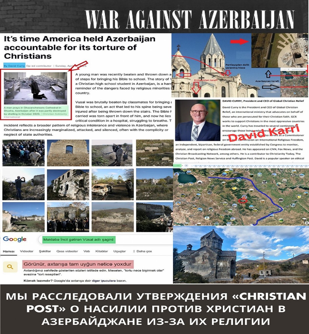 Наш комментарий. Заранее хотим отметить, что Дэвид Карри, который в мире известен как яростный защитник христиан и «ведущий голос за рост преследований христиан», занимался мониторингом условий глобальной религиозной свободы в Конгрессе США и работал комиссаром в Комиссии США по международной религиозной свободе (USCIRF). В отчётах USCIRF были представлены необоснованные, ложные и клеветнические материалы о странах с мусульманским большинством, в том числе об Азербайджане, демонстрируя явную предвзятость. Игнорируя акты тяжёлого вандализма в отношении религиозных памятников Азербайджана, совершённые армянами, он пытался сформировать ложное и лицемерное мнение о якобы религиозных преследованиях со стороны агрессора.