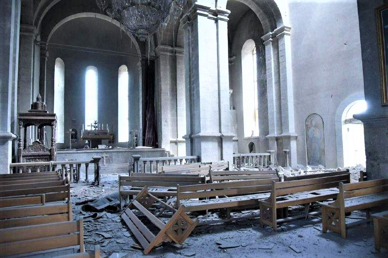 Начнём с фотографии, выбранной для статьи. На фоне разрушений изображён старик, молящийся на коленях. «Christian Post» опубликовал эту фотографию с подписью: «В октябре 2020 года в результате ракетного удара со стороны Азербайджана частично разрушенная церковь Казанчи в Шуше, в которой молится один человек». Для простых читателей, не осведомлённых о ситуации (реальности), на первый взгляд нет ничего необычного.