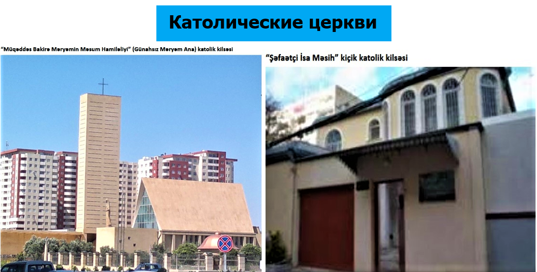 Католическая церковь, небольшая католическая церковь «Ходатай Иисус Христос», Лютеранская церковь и другие религиозные святыни отражают уважение Азербайджанского государства к религиям.