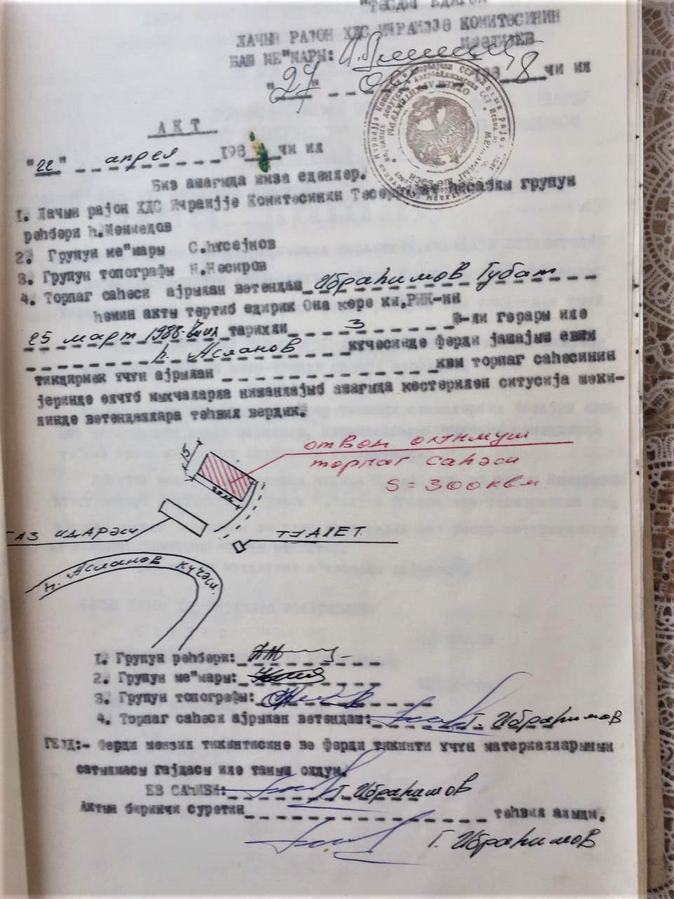 Для информации следует отметить, что армянские вооруженные силы оккупировали Лачинский район 18 мая 1992 года, через 10 дней после оккупации города Шуша, убив мирных жителей и проведя этнические чистки. В 1998 году армяне разрушили дом Губада Ибрагимова, жителя Лачина, который был выселен из своего дома, и на этом месте построили указанную церковь. На фото-скриншотах представлены копии документов, выданных местными властями Азербайджана Губаду Ибрагимову в 1988 году, а также фотографии, подтверждающие, что армяне проводили строительные работы: