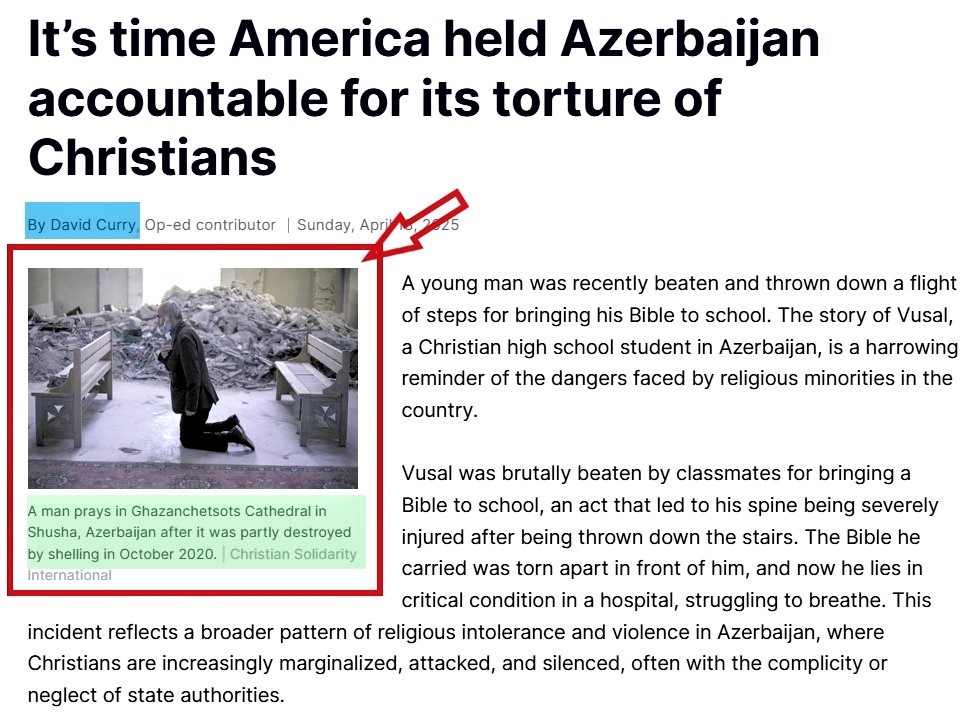 Публикация Дэвида Карри — религиозного активиста, неоднократно демонстрировавшего открытую враждебность и предвзятость по отношению к исламу, — в издании «Christian Post», где он выдвигает абсурдные и необоснованные обвинения в адрес Азербайджана, наглядно отражает его последовательную антиисламскую риторику и предвзятый подход.