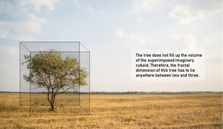 Рассуждая о разных оценках площади и вычислениях, которые к ним привели, американские специалисты отмечают, что изначально учёные пытались измерять площадь органов человека в рамках евклидовой геометрии. «Евклидовые формы, такие как идеальный квадрат или сфера, почти никогда не встречаются естественным образом. В то время как фракталы присутствуют повсюду в природе: от ветвления деревьев до речных сетей, от рисунка звёзд в галактике до вихрей», — пишут они. Если рассмотреть дерево — яркий пример фрактала, — станет понятно: вписанное в трёхмерный куб, оно занимает меньший объём, чем сам куб, однако больший, чем двухмерный прямоугольник. Поэтому для оценки как объёма, так и площади следует прибегать к фрактальной, а не евклидовой размерности.