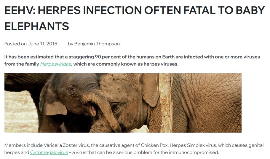 Помимо этого, значимый фактор смертности слонов — это болезни. Среди них преобладают сибирская язва и геморрагическая болезнь, спровоцированная слоновым эндотелиотропным герпесвирусом (EEHV). Вирус EEHV, особенно его подтип EEHV1A, — причина острой геморрагической болезни с очень высокой смертностью (до 85%) у азиатских слонов. Болезнь развивается быстро: медианный интервал от появления первых симптомов до смерти составляет всего 36 часов. Инфекция EEHV поражает преимущественно особей до пяти лет, живущих как в дикой природе, так и в неволе. У африканских слонов EEHV обычно протекает доброкачественно, вызывая только кожные поражения, но в некоторых случаях может быть летальным.