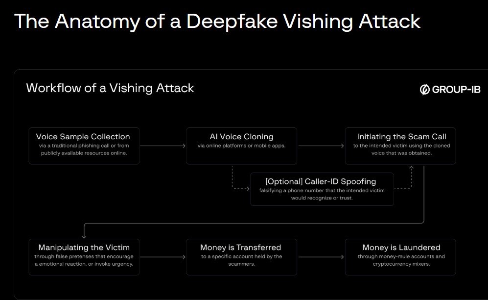 Существует два основных метода использования клонированных голосов при фишинговых атаках: 1) заранее подготовленное аудио: используется клонированный голос на основе заранее написанного сценария; 2) преобразование слов мошенника «в голос знакомого человека» в режиме реального времени.