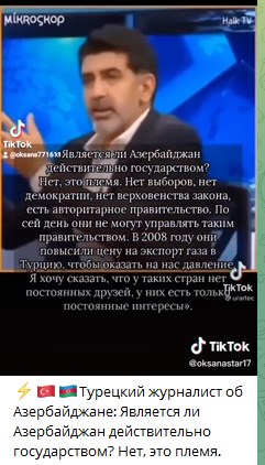 Telegram’da yayın yapan Ermenilere ait ‘‘sismasis’’ kanalı bir süre önce bir video paylaşarak Türkiyeli gazeteci Levent Gültekin’in Azerbaycan hakkında söylediklerini ısıtarak izleyenlerine tekrar servis etmek girişiminde bulundu. Gazeteci Levent Gültekin o videoda şunları söylüyor: ‘’Azerbaycan gerçekten bir devlet mi? Hayır, bu bir kabile. Seçim yok, demokrasi yok, hukuk devleti yok. 2008'de üzerimizde baskı kurmak için Türkiye'ye yapılan gaz ihracatının fiyatını yükselttiler. Bu tür ülkelerin kalıcı dostları olmadığını, sadece kalıcı çıkarları olduğunu söylemek istiyorum.’’
