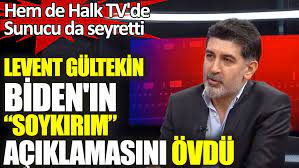 Şimdi gelelim tekrar Levent Gültekin’e. Gazeteci sadece Türkiye’nin kırk dört günlük savaş sırasında Azerbaycan’a verdiği destekten rahatsız değil. Ciddi anlamda bu ülkede ne Türk’ün, Türk dünyasının gelişimine azacık ta olsa katkıda bulunuyorsa, hemen o anda Levent Gültekin devreye giriyor. Örneğin, Halk tv’de yayınlanan bu programda bahsi geçen gazeteci tarafından yine milli değerlerimiz hedef alınıyor, Türkler soykırımcı ilan ediliyor. Daha önce FETÖ’nün Balyoz-Ergenekon kumpaslarının savunuculuğunu yapan Levent Gültekin, skandallarına bir yenisini daha katıyor. Halk TV'de yapılan programda Levent Gültekin ve Murat Sabuncu ABD Başkanı Joe Biden'ın Türkleri soykırımcı ilan etmesine destek vererek bu açıklamaya verilen tepkiye karşı çıkıyor. Gültekin, Biden’in Osmanlı'yı soykırımla suçlayarak Türkiye'yi kurtardığını ilan ederken Murat Sabuncu muhalefetin soykırım yalanına karşı çıkmasına kızdı. Levent Gültekin o programda şunları söyledi: “Rusya tanımış, Almanya tanımış, İsviçre tanımış, 31 tane ülke tanımış. ABD bir açıklama yaptı ne olur 32 olur. Biz bundan neden rahatsızız. Dünyada böyle kaba, böyle sorunlarını çözemeyen ülke olmaktan utanırız. Yeri gelir özür dileriz, yeri gelir alttan alırız. Güçlünün zayıftan özür dilemesi büyüklüktür.” (Kaynak)