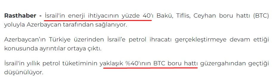 - Azerbaycan'ın İsrail'in %40'lık petrol tedarikçisi olduğu fikri tamamen yanlıştır, kasıtlı olarak abartılmış bir rakamdır.