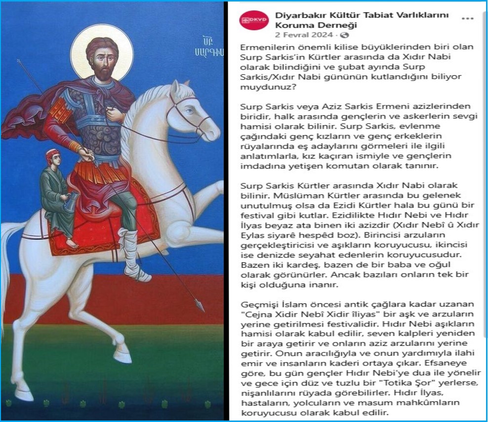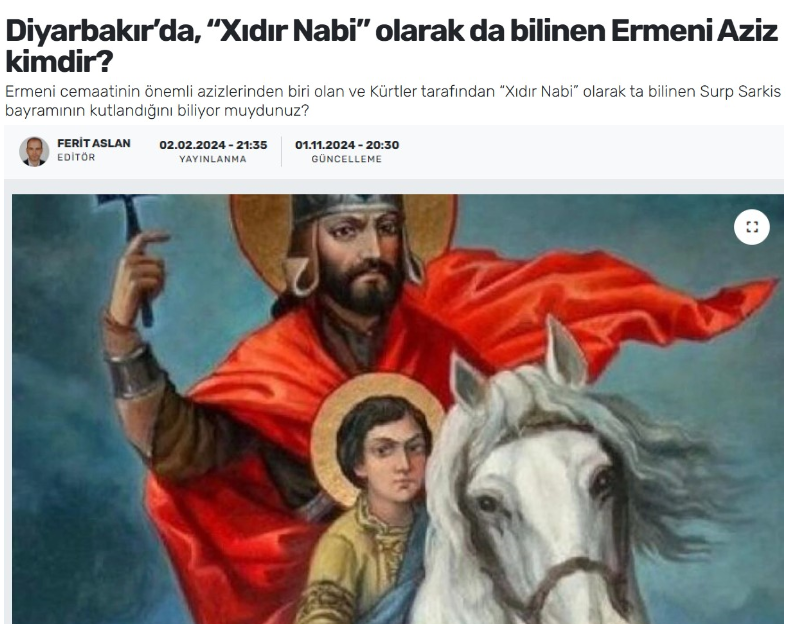 Gazete ''Ermeni cemaatinin önemli azizlerinden biri olan ve Kürtler tarafından “Xıdır Nabi” olarak ta bilinen Aziz Sarkis bayramının kutlandığını biliyor muydunuz?!'' şeklinde sunduğu iddianın Diyarbakır Kültür Varlıklarını Koruma Derneği (DKVD)'nin sosyal medya hesabından duyurulduğunu vurguladı.