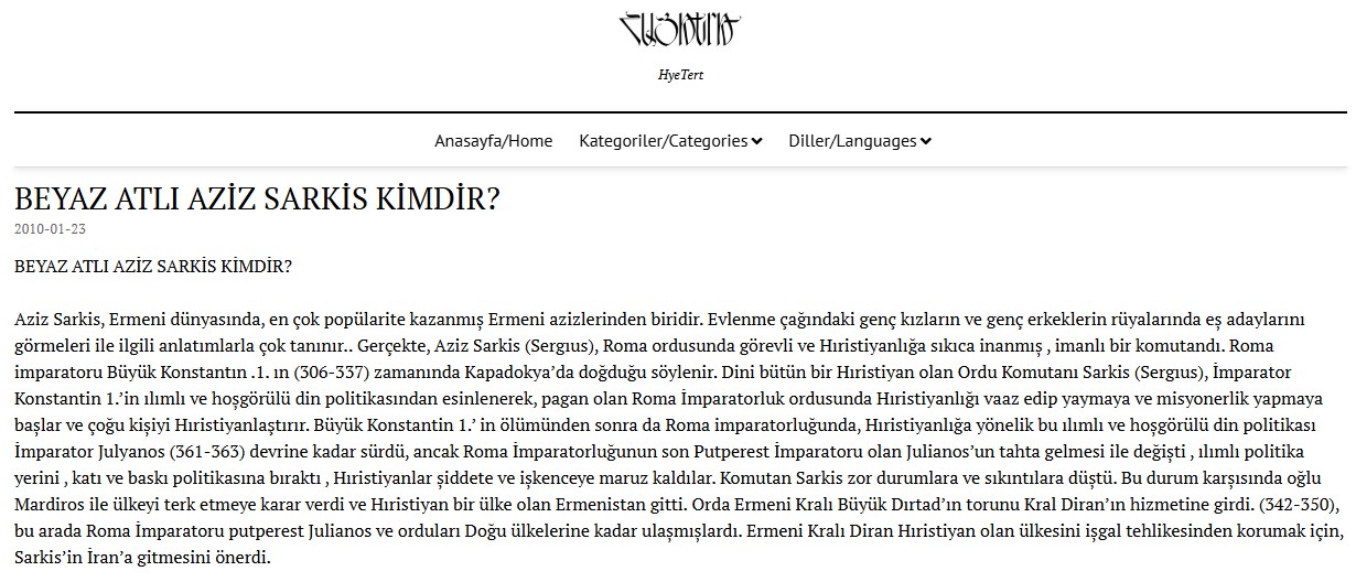 Yakın tarihte merkezi Dyarbakır'da bulunan Cermik gazetesinde ''Diyarbakır'da Hıdır Nebi olarak ta bilinen Ermeni Aziz kimdir?!'' başlıklı bir makale yayınlandı.