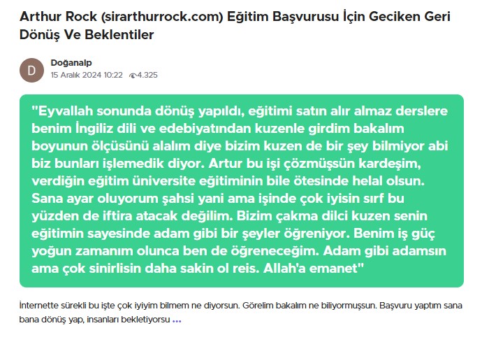 Dersler başlamasına rağmen Ertuğrul Kaya, belirtilen süre zarfında yükümlülüklerini yerine getirmemiş. Bu nedenle şikayetçi, "Sirarthurrock" takma adıyla bilinen bu kişiden parasının iadesini istiyordu.