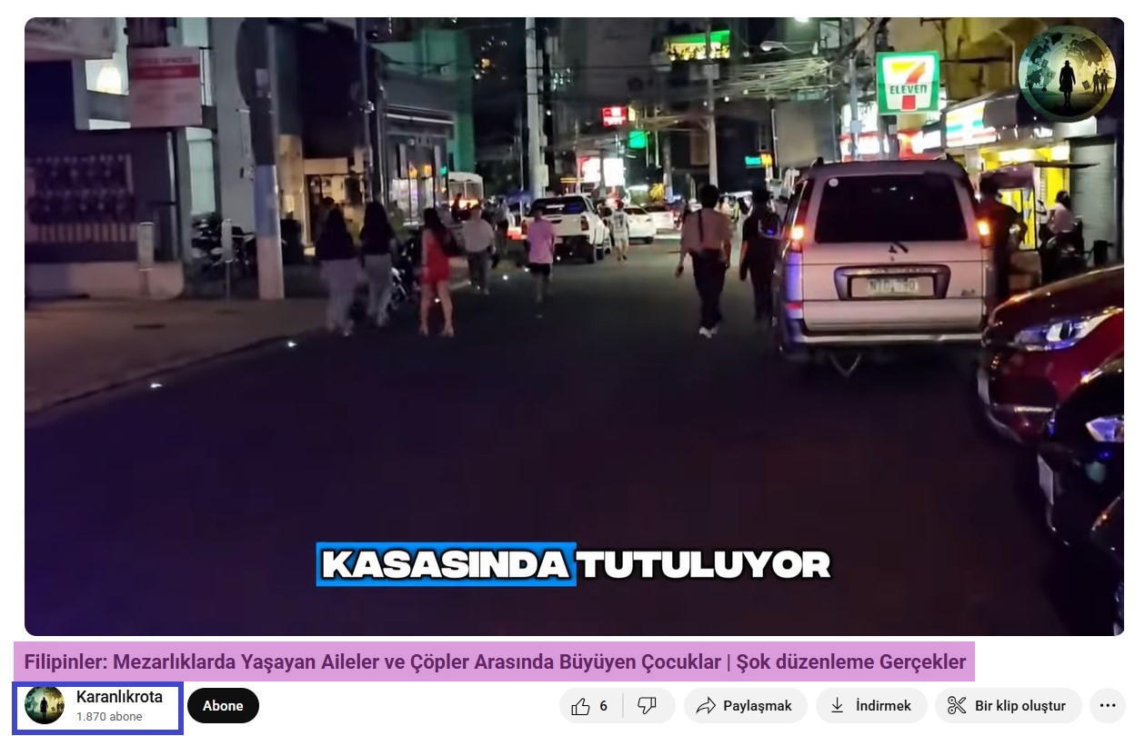 Araştırmamızı sürdürdükçe, "Karanlık Rota" kanalının hazırladığı "Filipinler'deki Mezarlıklarda Yaşayan Çocuklar" videosundaki fikir ve söylemlerin, Okan Süvari'nin "YouTube" kanalındaki aynı adlı videosunda da tekrarlandığını gördük.