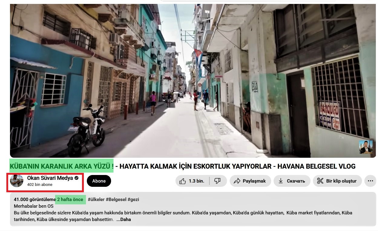 Kanalda yayınlanan videoları izleyip incelemeye başladık ve sonunda bir ipucu bulduk. Şöyle ki, diğer bir kanalda daha bu kanalda yayınlanan, tema ve içerik olarak aynı olan "Küba'nın Karanlık Yüzü: Daha Önce Hiç Duymadığınız Şok Edici Gerçekler! Seyahat Filmi" başlıklı bir videoya rastladık. Bu video, daha önce Azerbaycan hakkında taraflı videolar çekmiş olan Ermeni asıllı youtuber Okan Suvari'nin "Küba'nın Karanlık Yüzü - Hayatta Kalmak İçin Yapıyorlar..." başlıklı videosuyla aynıydı.