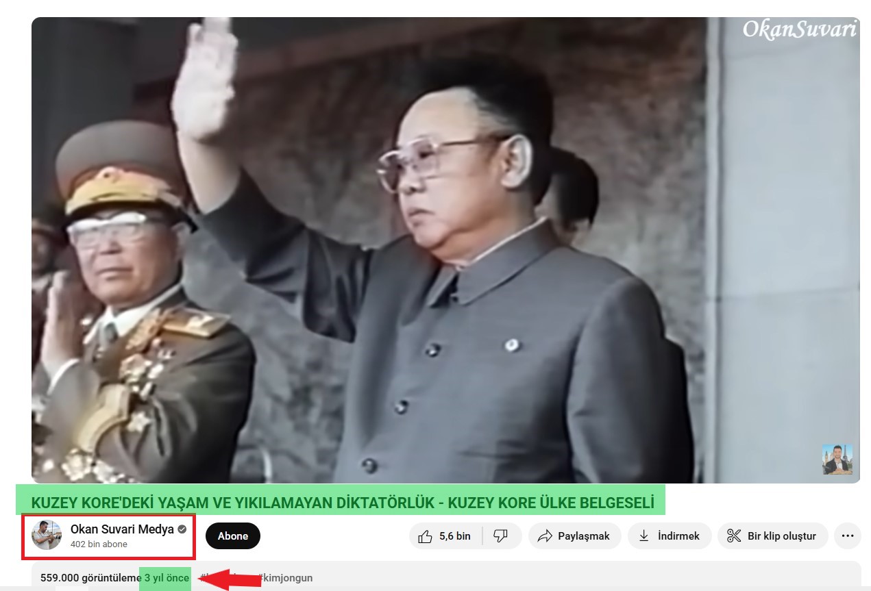 Kuzey Kore hakkındaki videolarda ise tam tersini görüyoruz: Okan Suvari'nin 3 yıl önce "YouTube" kanalı için hazırladığı içerik, 3 hafta önce "Karanlık Rota" kanalında yayınlanan videonun içeriğiyle aynı.