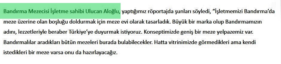 Haberde "Bandırma mezecisi" isimli işletmenin sahibi olaraksa Ulucan Aloğlu'nun ismi geçmekteydi.