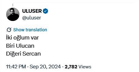Geri dönüp uluser isimli kullanıcının tvitlerine baktığımızdaysa "Ulucan" isminin geçtiği bir tvitine rastladık: "İki oğlum var: biri Ulucan, diğeri Sercan..."
