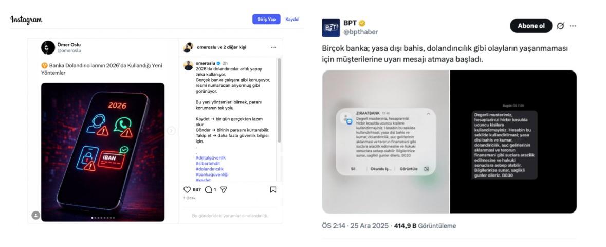 -       "Bankacılık Düzenleme ve Denetleme Kurumu (BDDK) altın alımını yasakladı", "Merkez Bankası faiz indirecek", "Kriptodan vergi kalktı" ve "Yüzde X getiri sağlayacak yatırım" gibi sahte bilgiler, kasıtlı olarak paylaşılarak, finansal dezenformasyon hedeflenebilir.